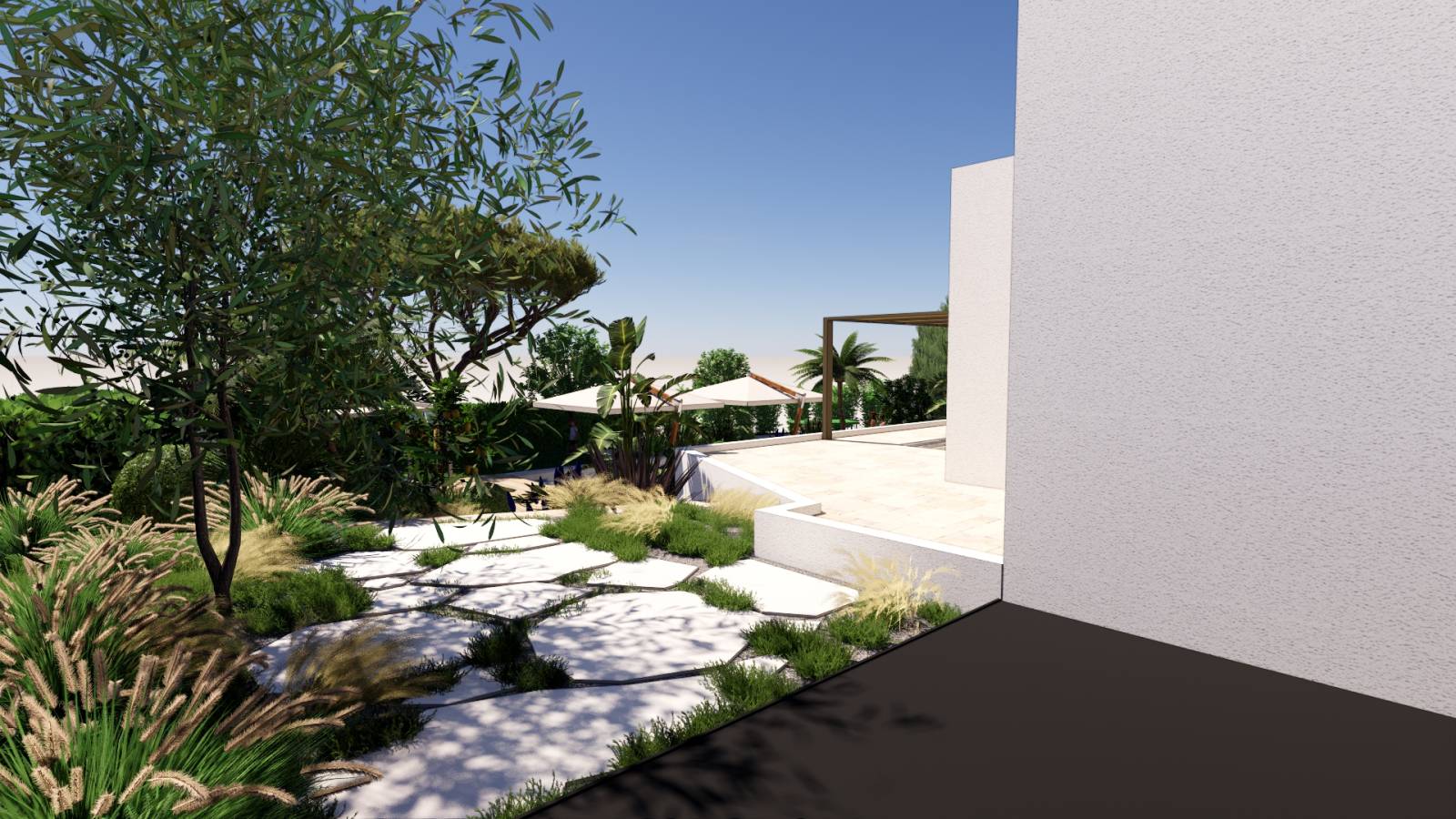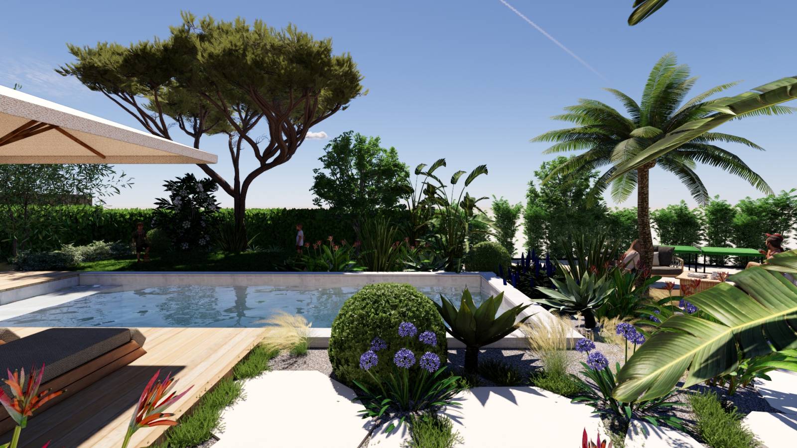 - Conception et Agencement des Espaces de Vie : Intégration réfléchie de piscines, zones ombragées et espaces conviviaux pour maximiser le confort et profiter pleinement du climat et du paysage.