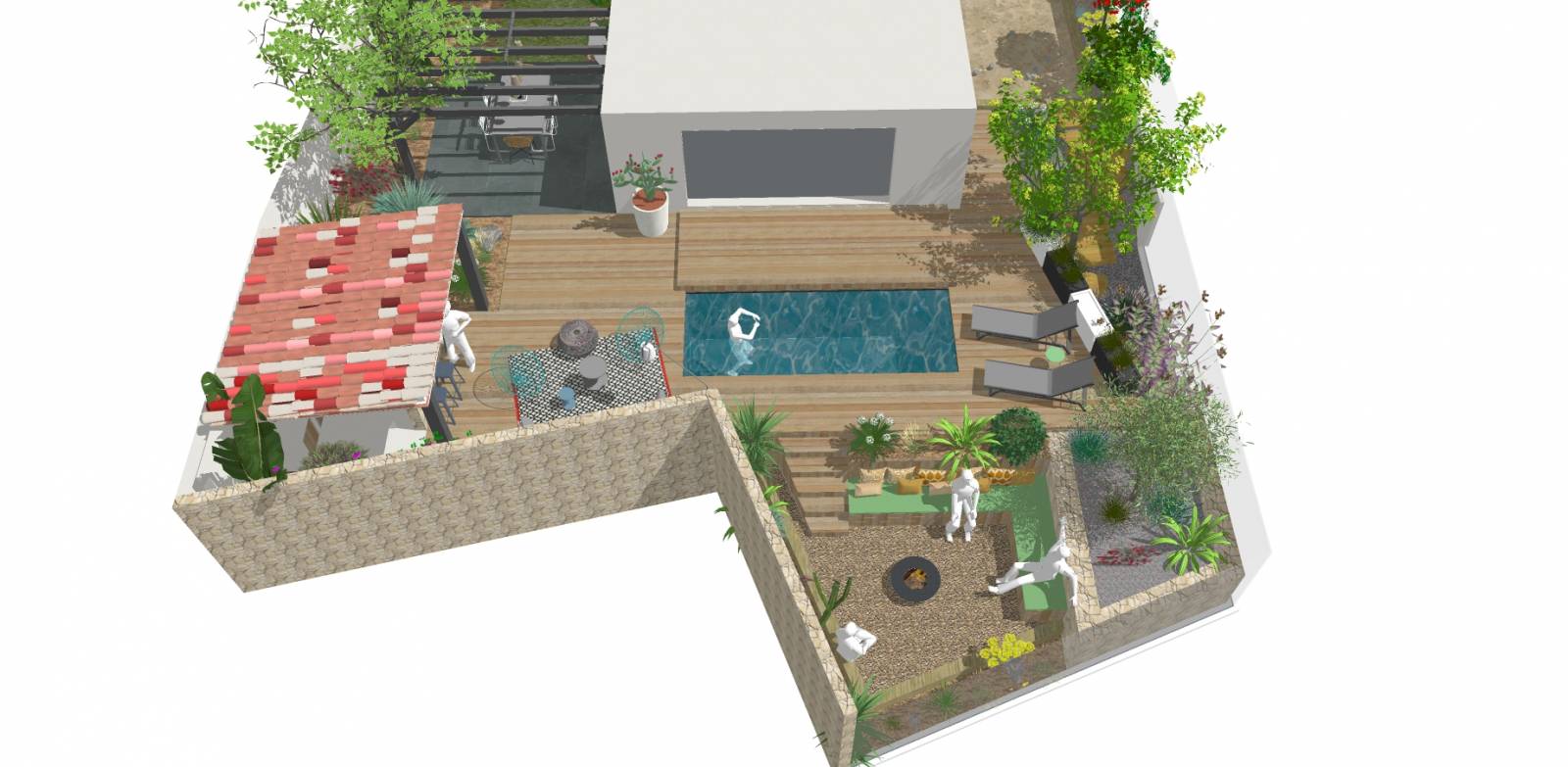 Nous sommes architecte d'extérieur au service des particuliers et intervenons à La Ciotat et ses alentours. Notre bureau d'étude réalise votre projet d'aménagement de jardin en détail avec l'élaboration de plans en 3D et perspectives en 3D. Cette étape vous permettra de visualiser votre jardin dans les moindres détails: le choix des matériaux, la sélection des végétaux, le style et les formes de votre jardin, ...