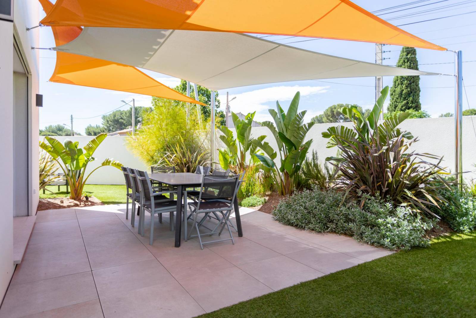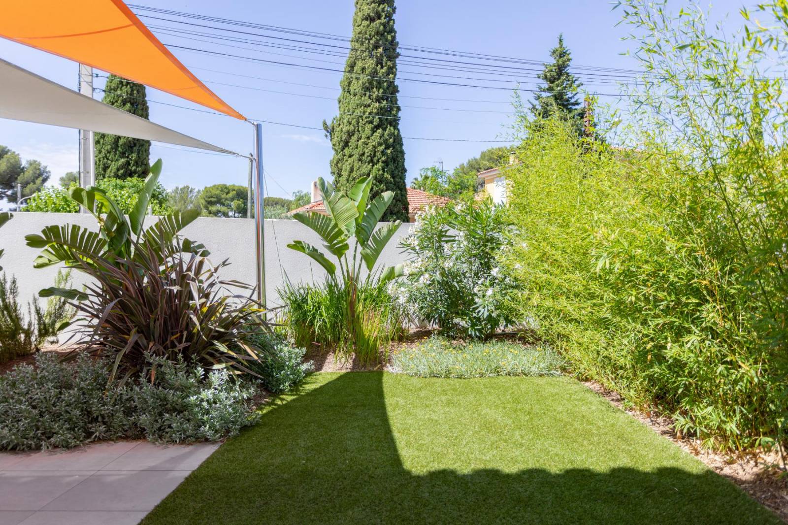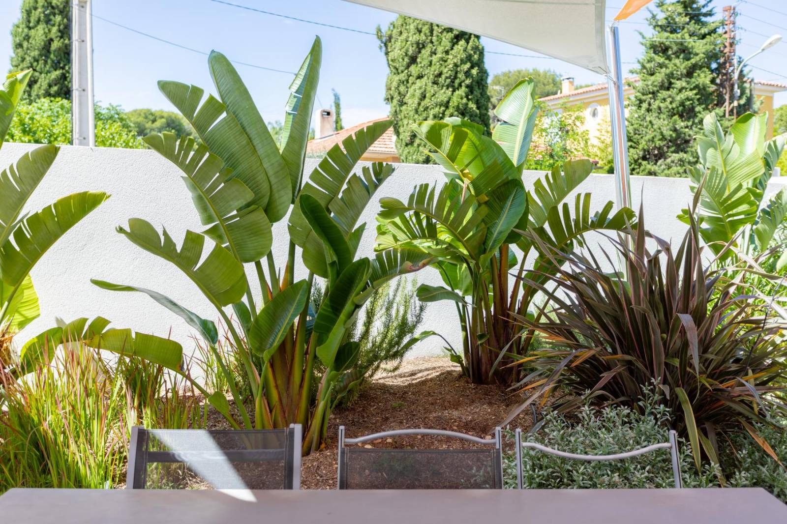 Tous les espaces de ce jardin sont entourés par la végétation. La palette végétale de ce projet de création de jardin méditerranéen situé à La Ciotat est composée de plusieurs variétés de plantes.