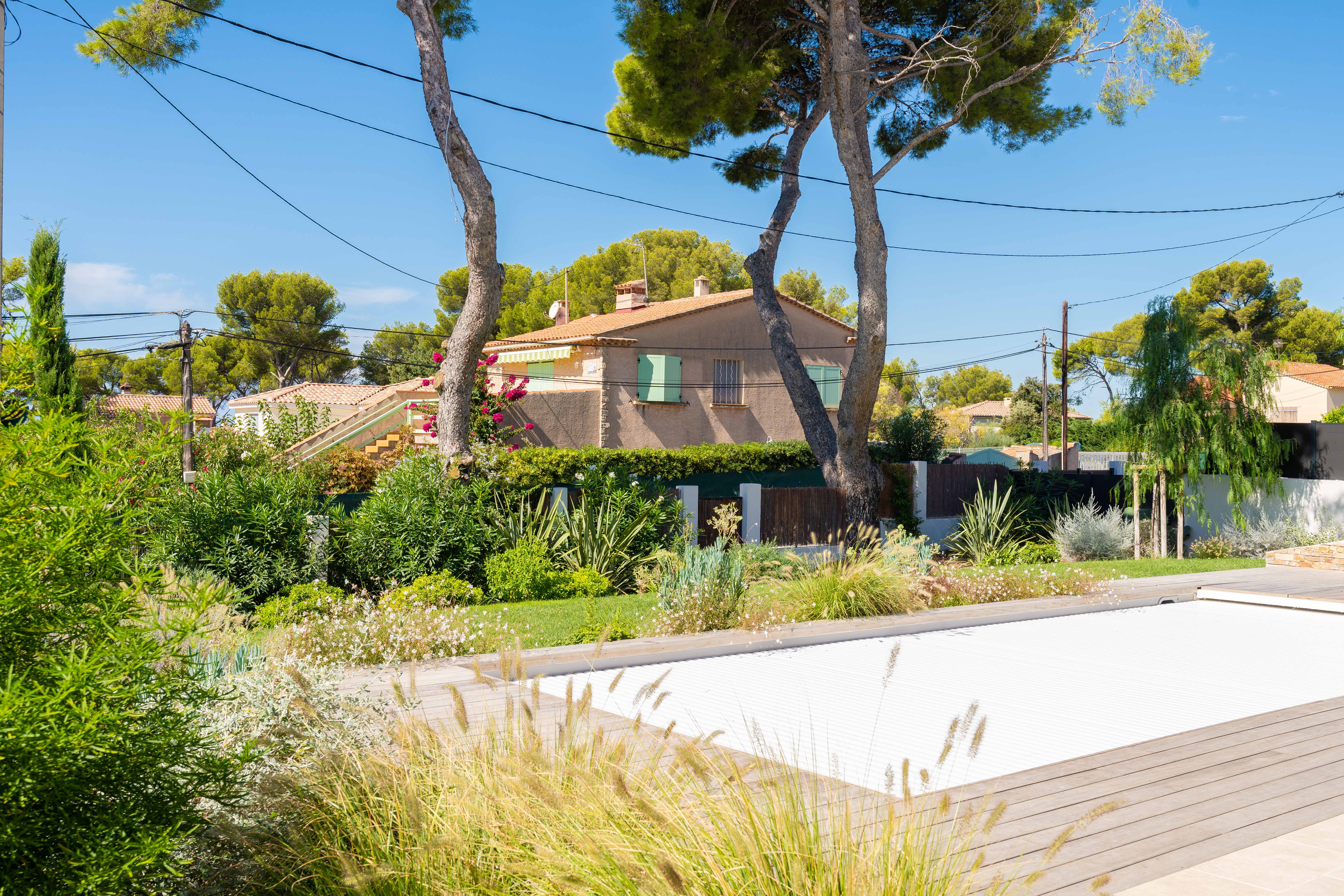 L'aménagement d'un jardin avec une piscine et une terrasse en bois exotique au Castellet, dans le Var peut être un projet passionnant.